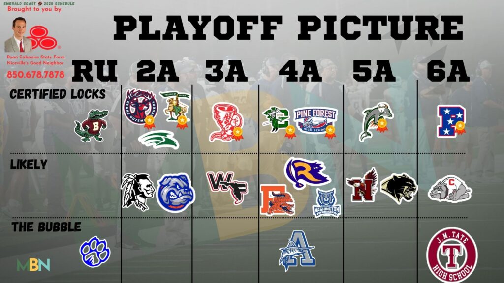 • With many teams in our area already guaranteed a spot (Choctaw, Baker, Pensacola Catholic), some sit in limbo (Crestview, Tate, Milton and Niceville).